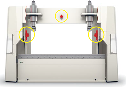 But cycle time is not just about ram speed. Fiessler AKAS 5M safety lasers on the PRCE can bring the mute point as low as 2mm, further minimizing cycle time.