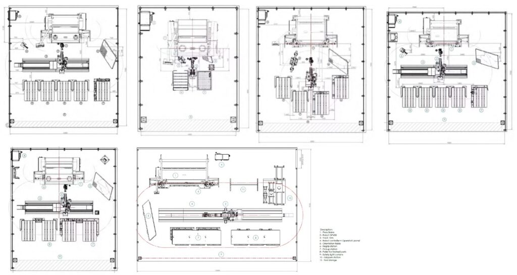 The press brake, robot, grippers, and other features are specifically selected based on the part drawings you provide.