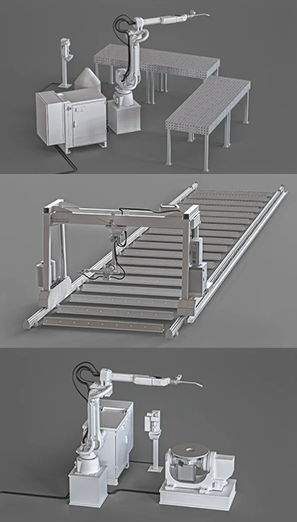Possible layouts include multi-robot, track mounted and gantry mounted robots.